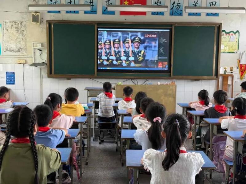 9月3日,在全民国防教育月的热潮中,青云学校德育处组织学生观看九三阅兵仪式。